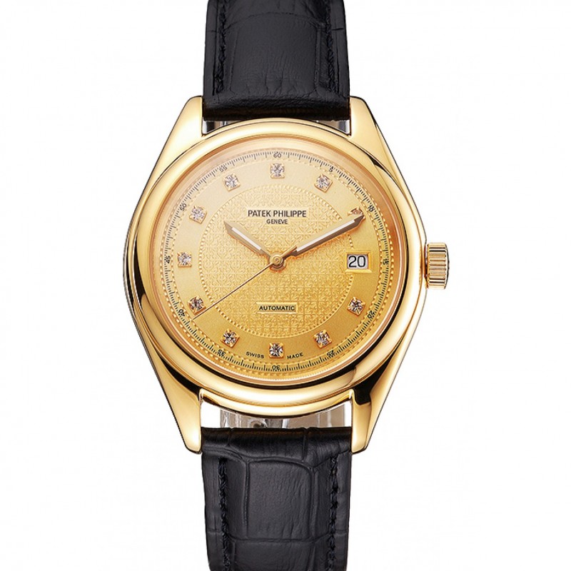 Suisse Patek Philippe Calatrava or cadran Marquages boîtier en or Bracelet en cuir noir