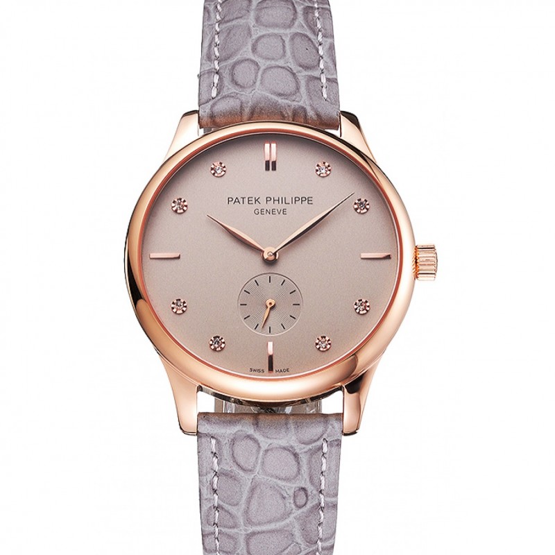 Patek Philippe Calatrava cadran gris diamant Marquages or rose gris Bracelet en cuir
