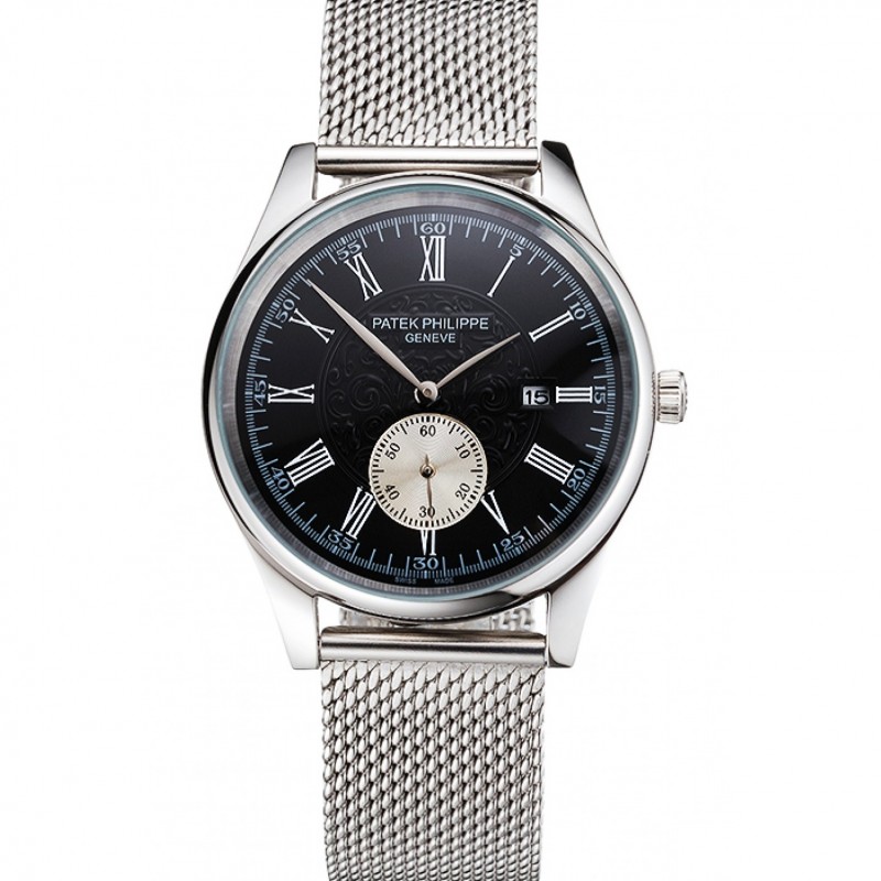 SS Patek Philippe Calatrava petites secondes Noir Gravé cadran et le boîtier en acier inoxydable Bracelet