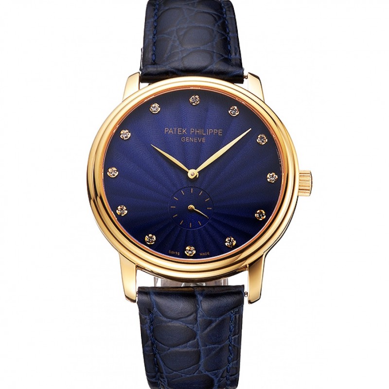 Patek Philippe Calatrava Bleu cadran guilloché boîtier en or bleu bracelet en cuir