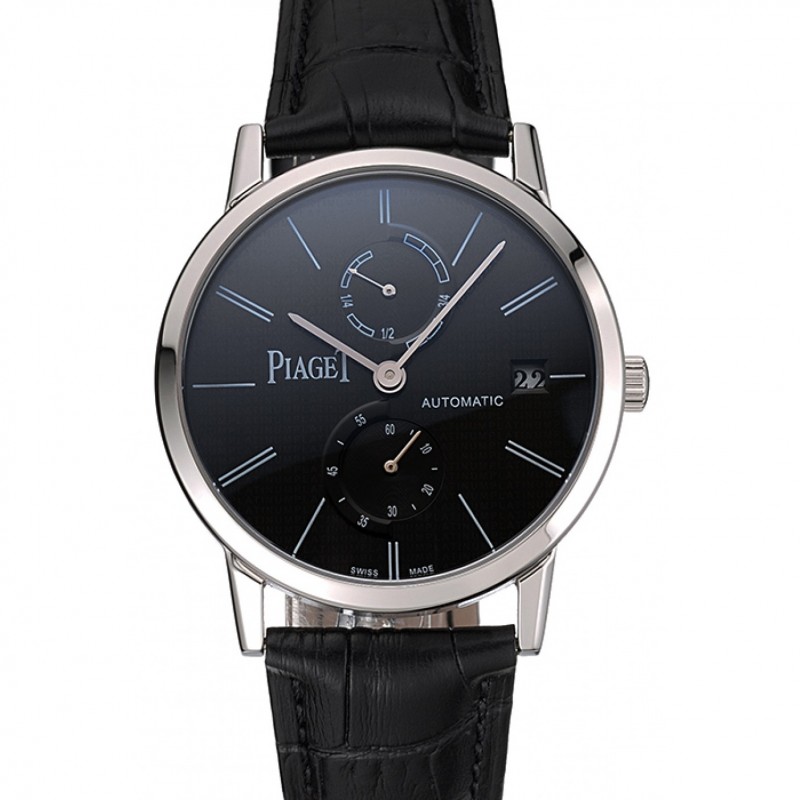 Piaget Altiplano Date de cadran noir Boîtier en acier inoxydable Bracelet en cuir noir