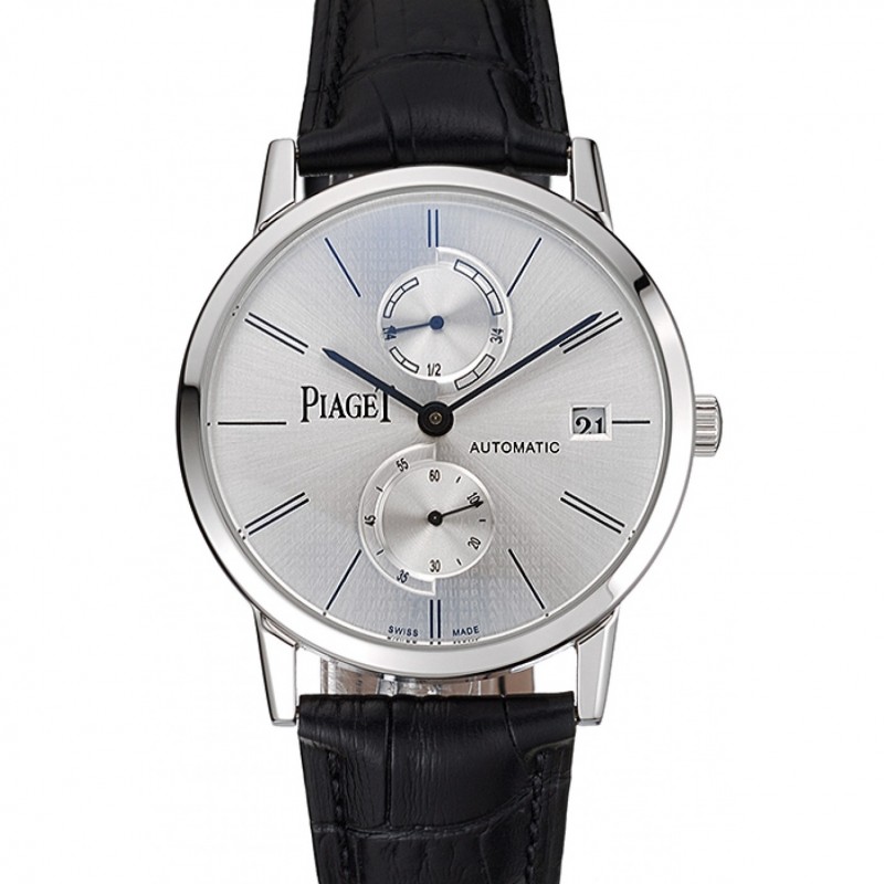 Haut Gamme Piaget Altiplano date cadran argenté Boîtier en acier inoxydable Bracelet en cuir noir