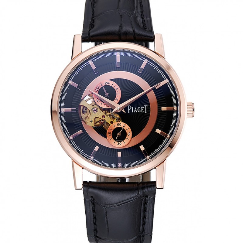 Piaget Altiplano Argent cas cadran noir Bracelet en cuir noir 622629