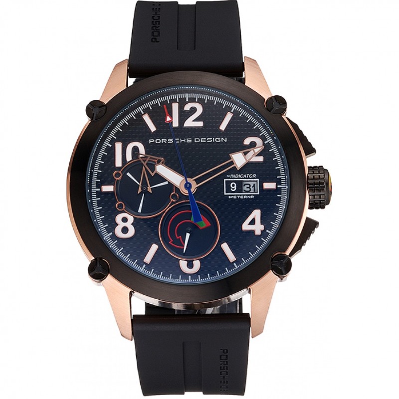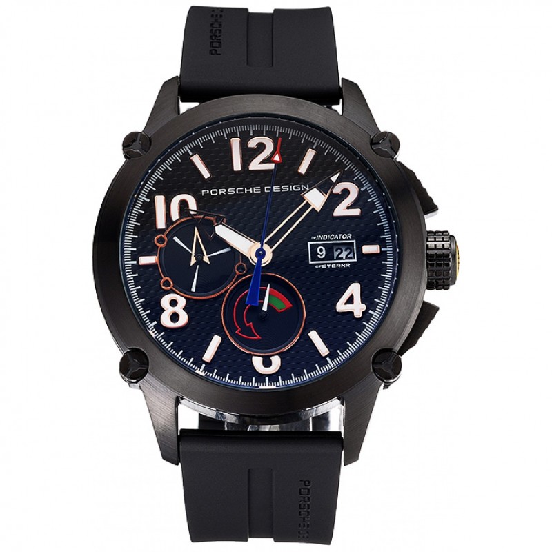 Porsche Design Indicateur cadran noir d’or PVD noir Numerals cas bracelet en caoutchouc noir
