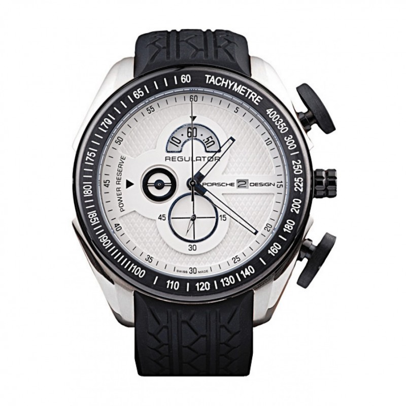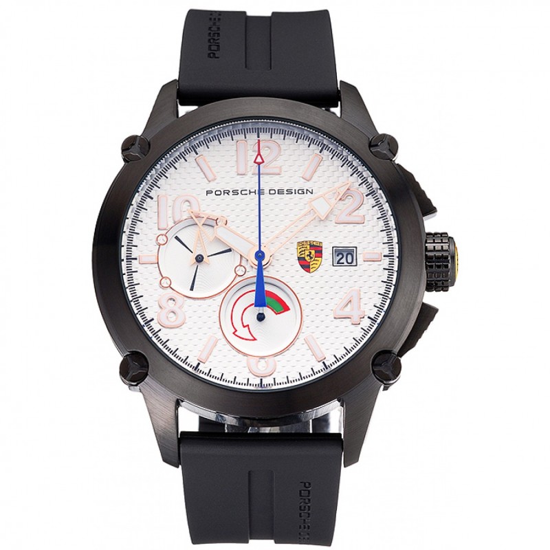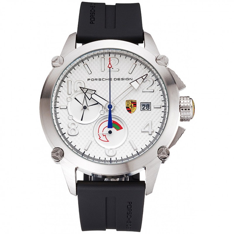 Porsche Design Indicateur cadran blanc Boîtier en acier bracelet en caoutchouc noir