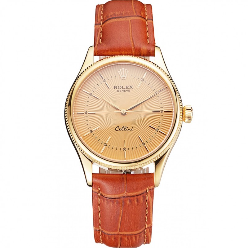 AAA Swiss Dial Rolex Cellini or et des marques boîtier en or bracelet en cuir brun clair