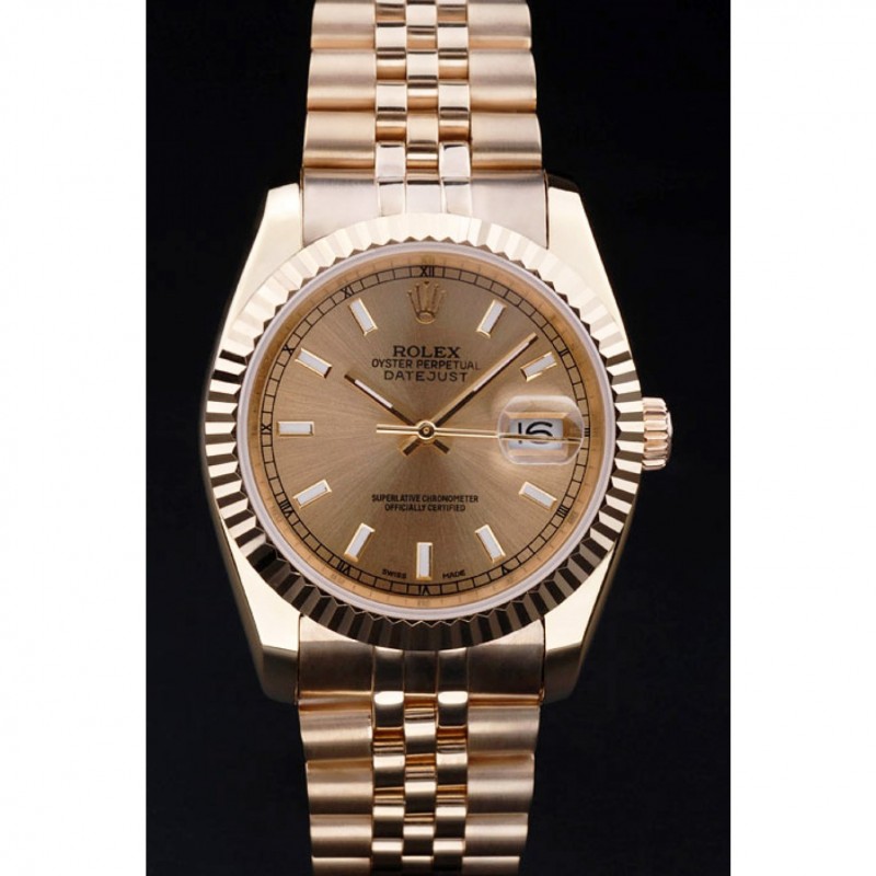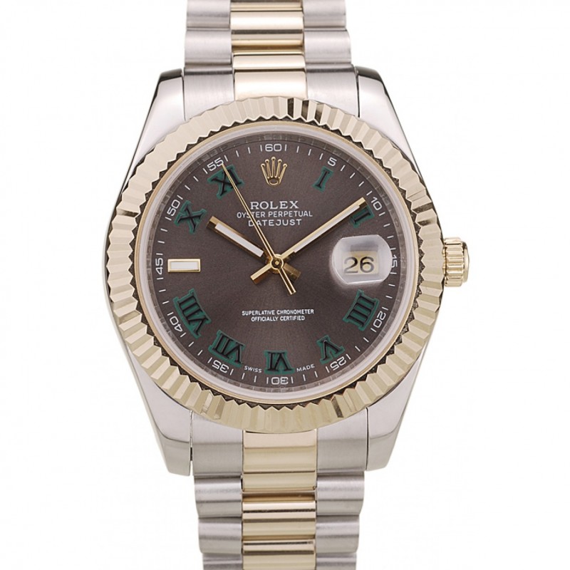 Haute qualité Motif nervuré Rolex Datejust or Bezel cadran brun