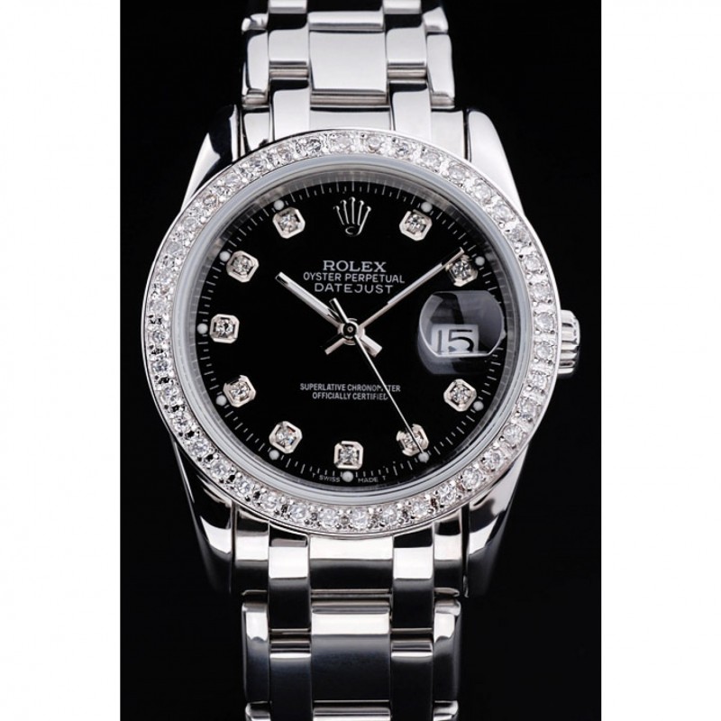 Rolex Datejust cadran noir Diamond Bezel Bracelet en acier inoxydable