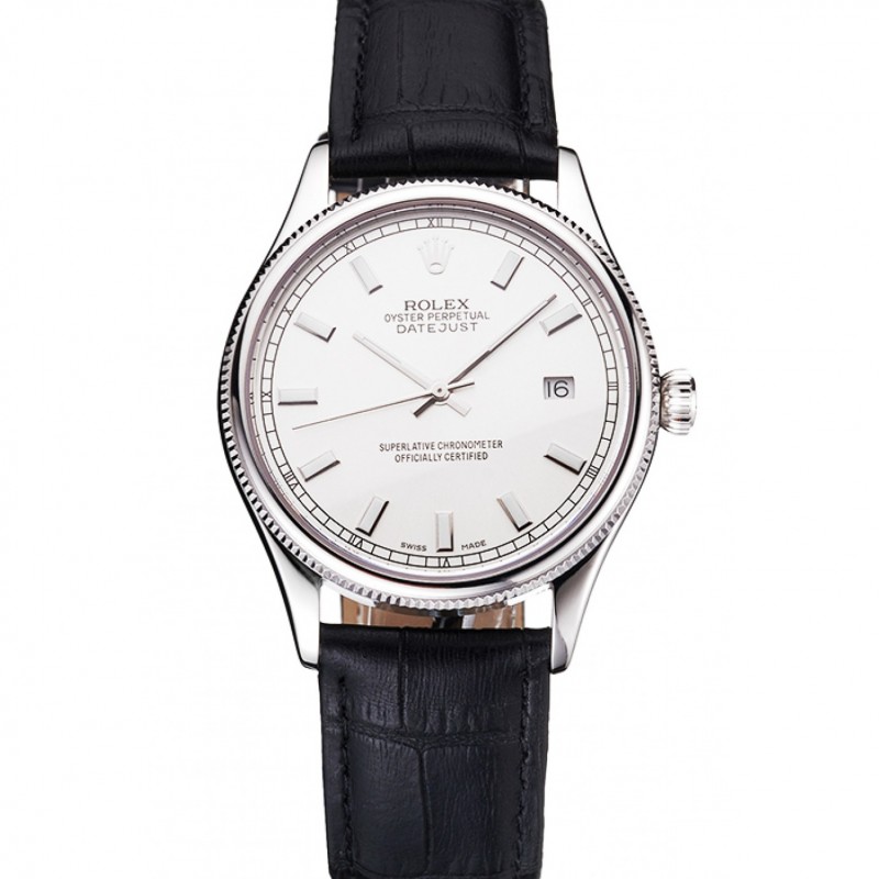Rolex Datejust suisse cadran blanc Boîtier en acier inoxydable Bracelet en cuir noir