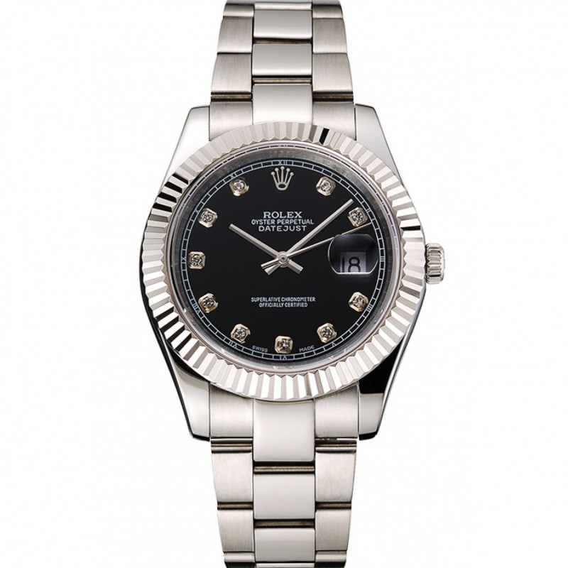 Swiss Rolex Datejust cadran noir Dimond heure marques Boîtier en acier inoxydable et le bracelet