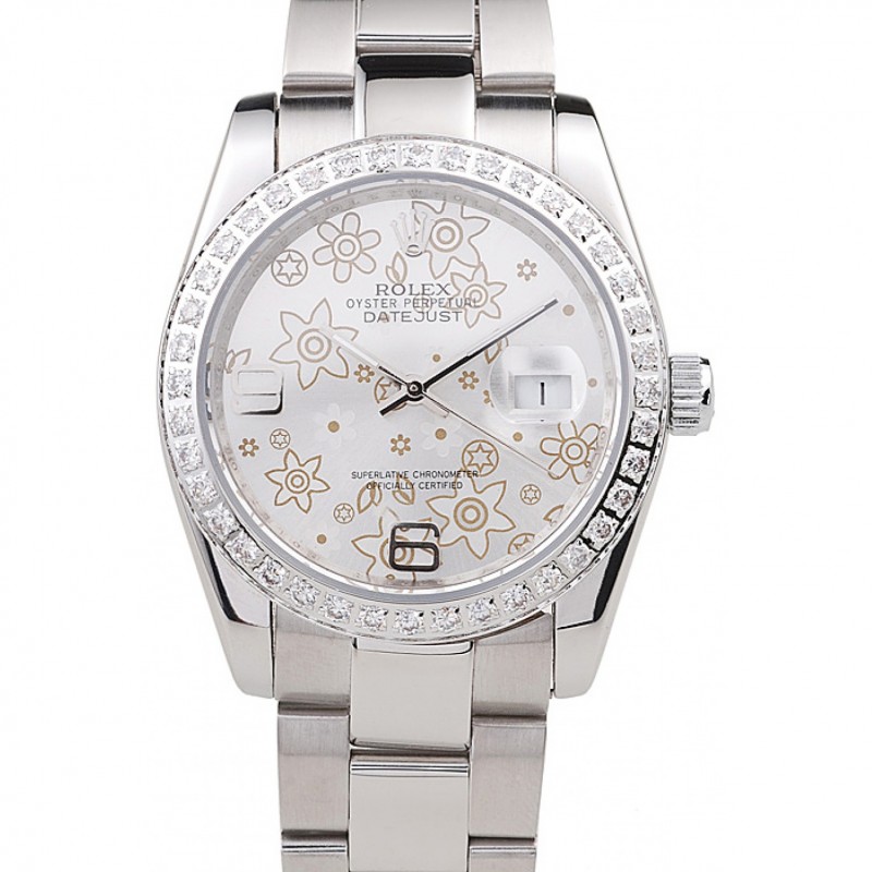 Rolex Datejust poli Fleurs d’argent en acier inoxydable cadran plaqué 98081