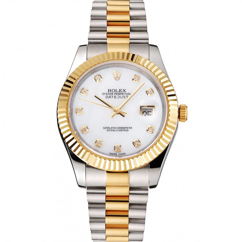 Swiss Rolex Datejust cadran blanc diamant heure marques d’or Bezel Boîtier en acier inoxydable Bracelet Deux Tone