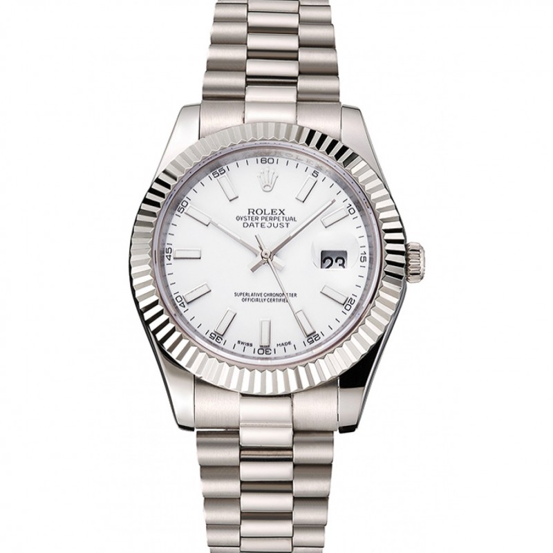 Swiss Rolex Datejust cadran blanc Boîtier en acier inoxydable et bracelet