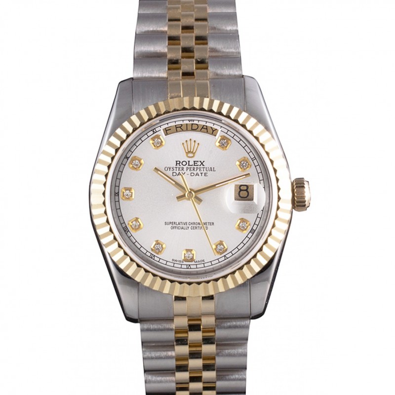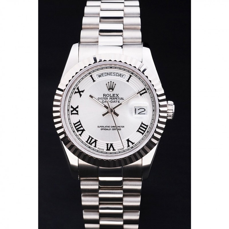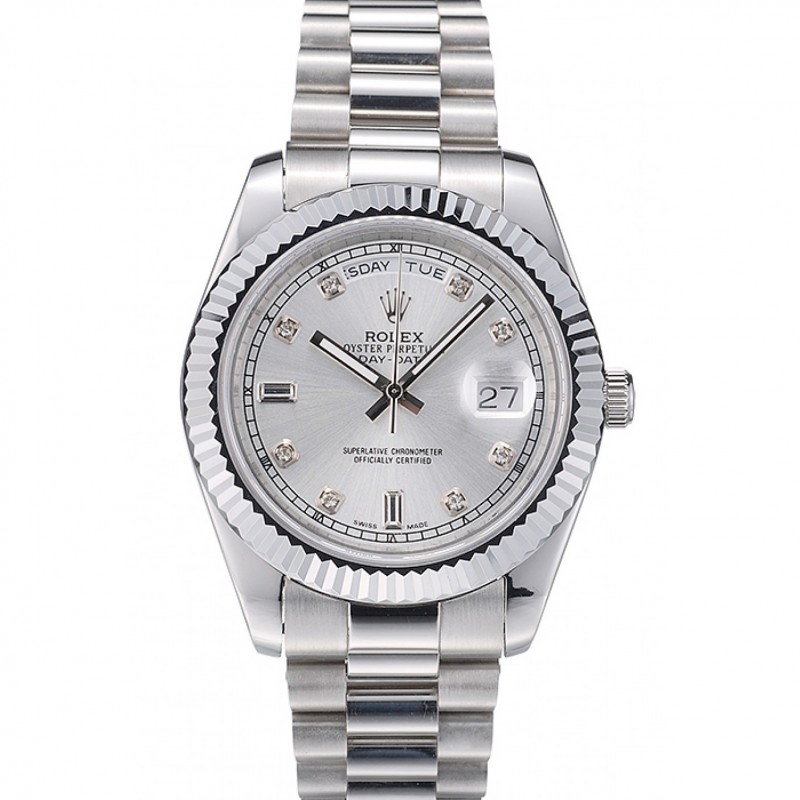 Haute qualité Nervuré Rolex Swiss DayDate Lunette en acier inoxydable Cadran Argent 41995