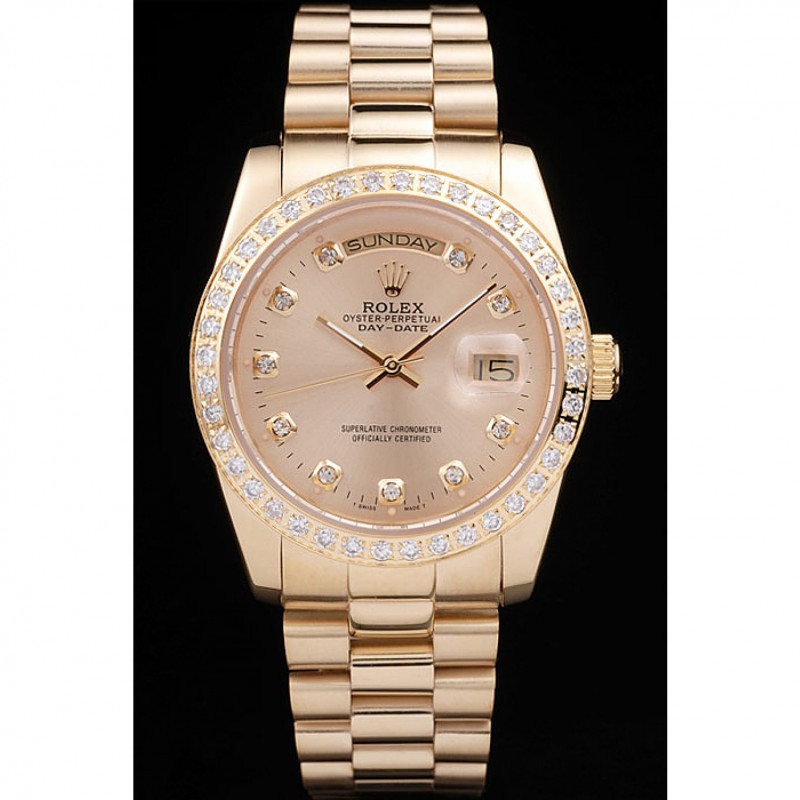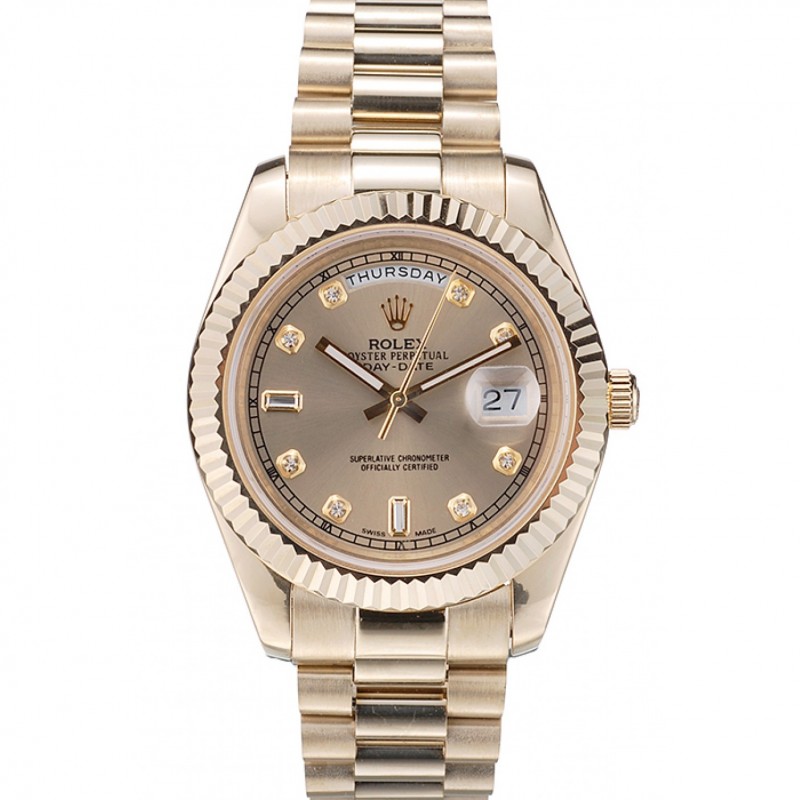 Luxe Replique Montre Rolex Day-Date en or jaune 18 carats plaqué acier inoxydable cadran en or