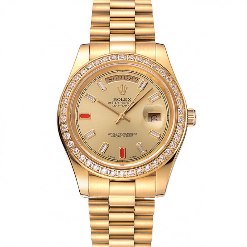 Luxe Replique Montre Rolex Day-Date en or jaune 18 carats plaqué acier inoxydable cadran en or