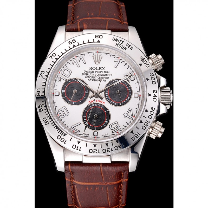 Haute qualité Cadran bracelet en cuir brun cas Rolex Daytona en acier inoxydable Blanc