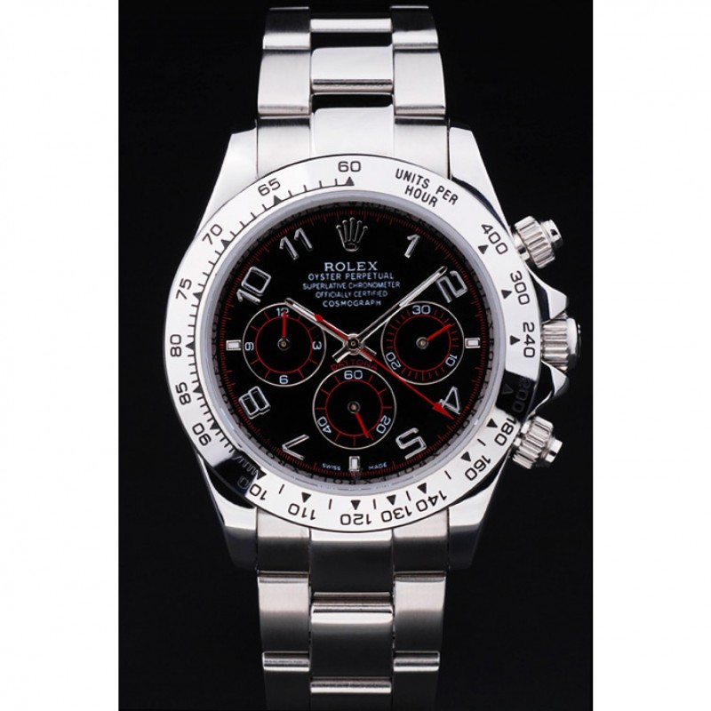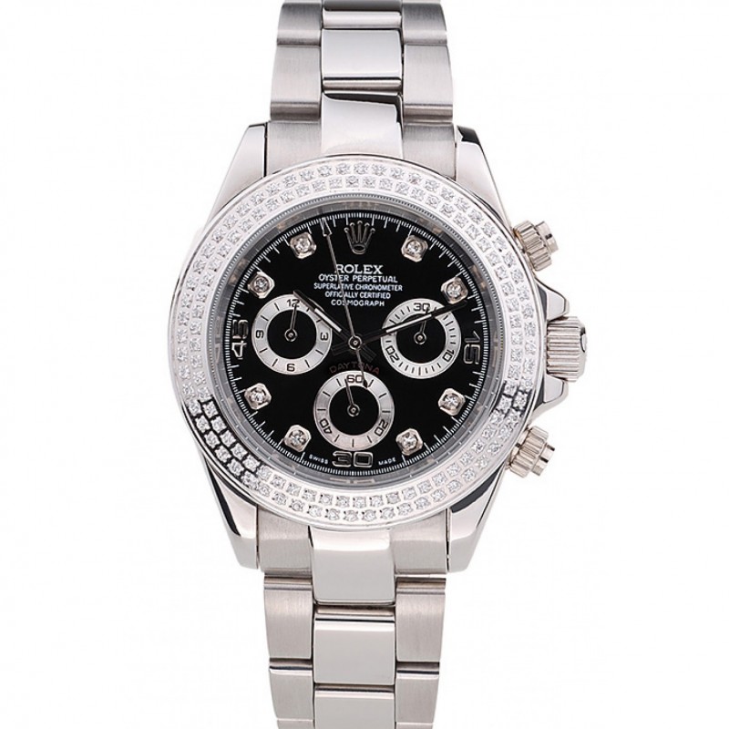 Bracelet en acier inoxydable Rolex Daytona suisse cadran noir 80296