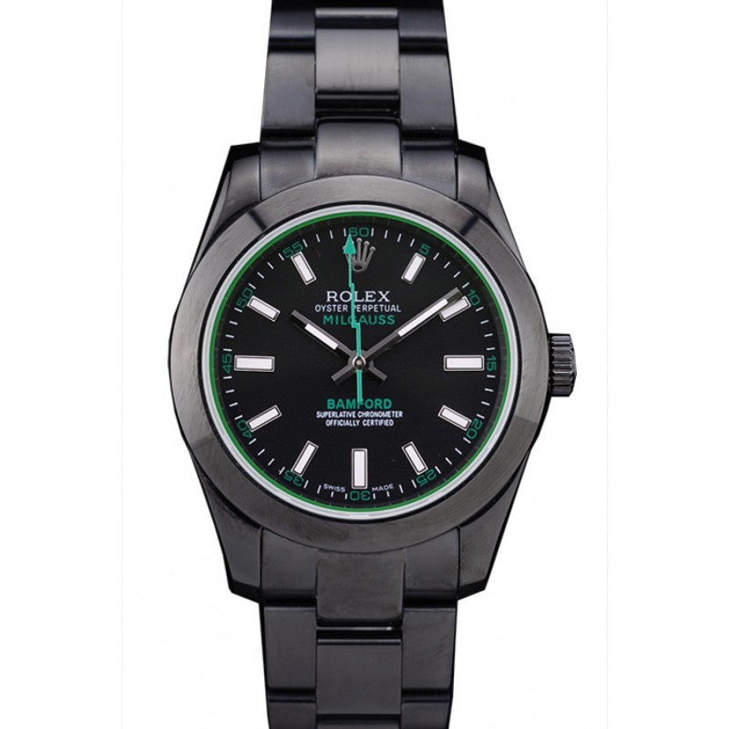 Rolex Milgaus Bamford Ion plaqué Lunette en acier inoxydable à cadran noir 7476