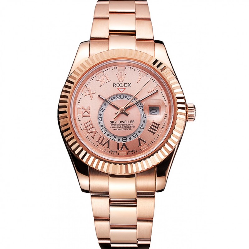 Boîtier et bracelet Rolex Sky Dweller or rose cadran en or rose