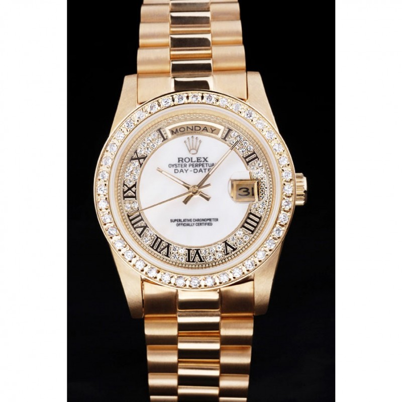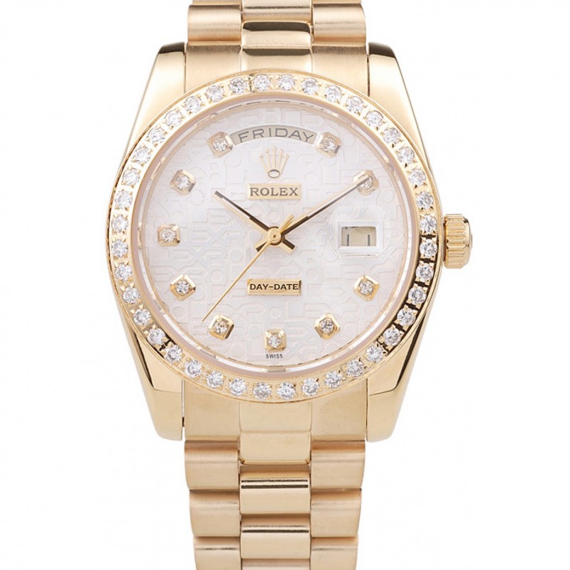 Haut Gamme Replique Montre Rolex Day-Date en or jaune 18 carats plaqué cadran blanc en acier inoxydable