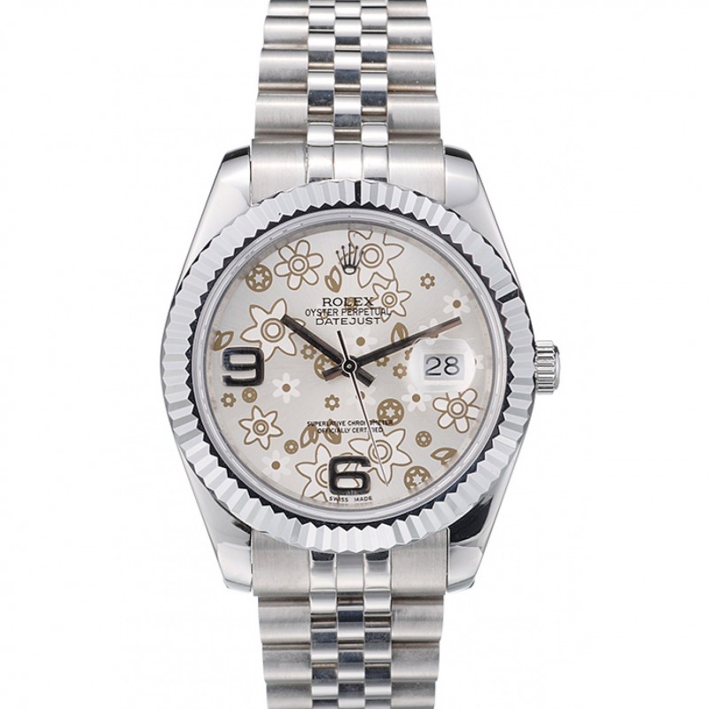 Nervuré suisses Rolex Datejust en acier inoxydable Lunette Fleur Cadran Argent 42001