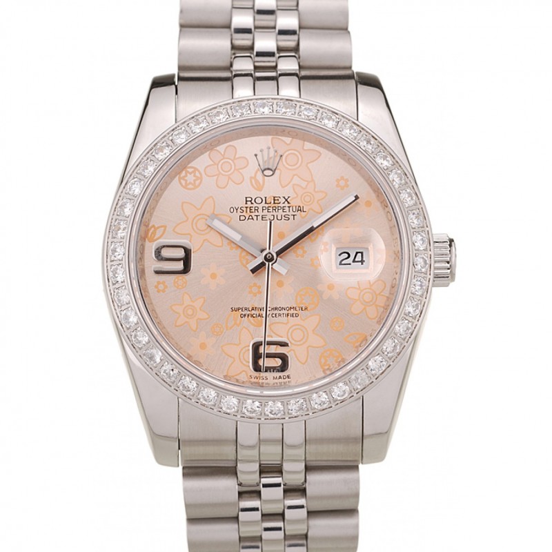 Rolex Datejust brossé Fleurs orange Boîtier en acier inoxydable Cadran diamants plaqué
