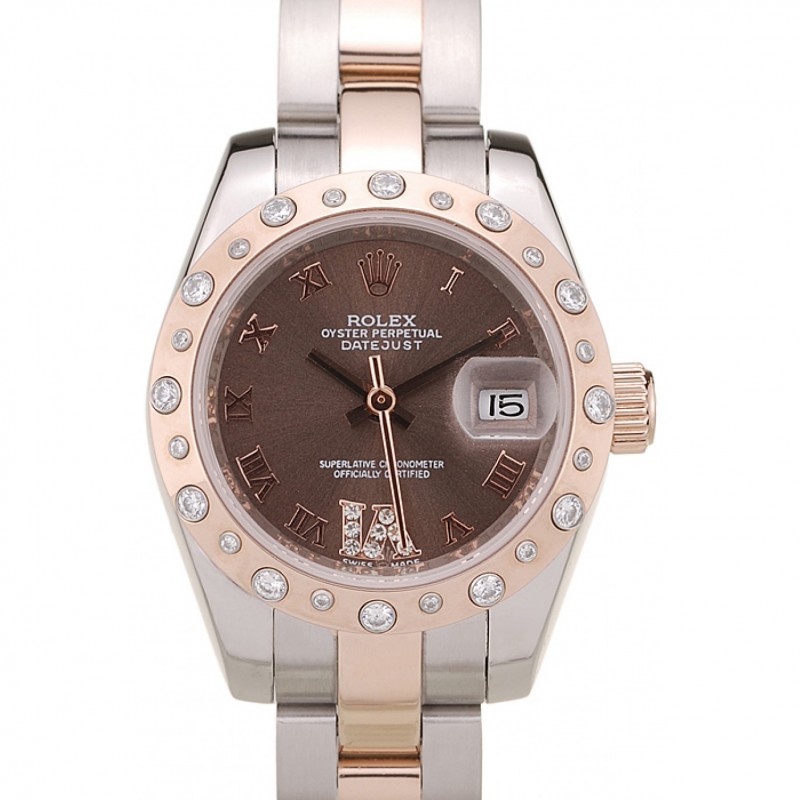 AAA Replique Montre Rolex Datejust en acier inoxydable brossé cas cadran brun diamant plaqué