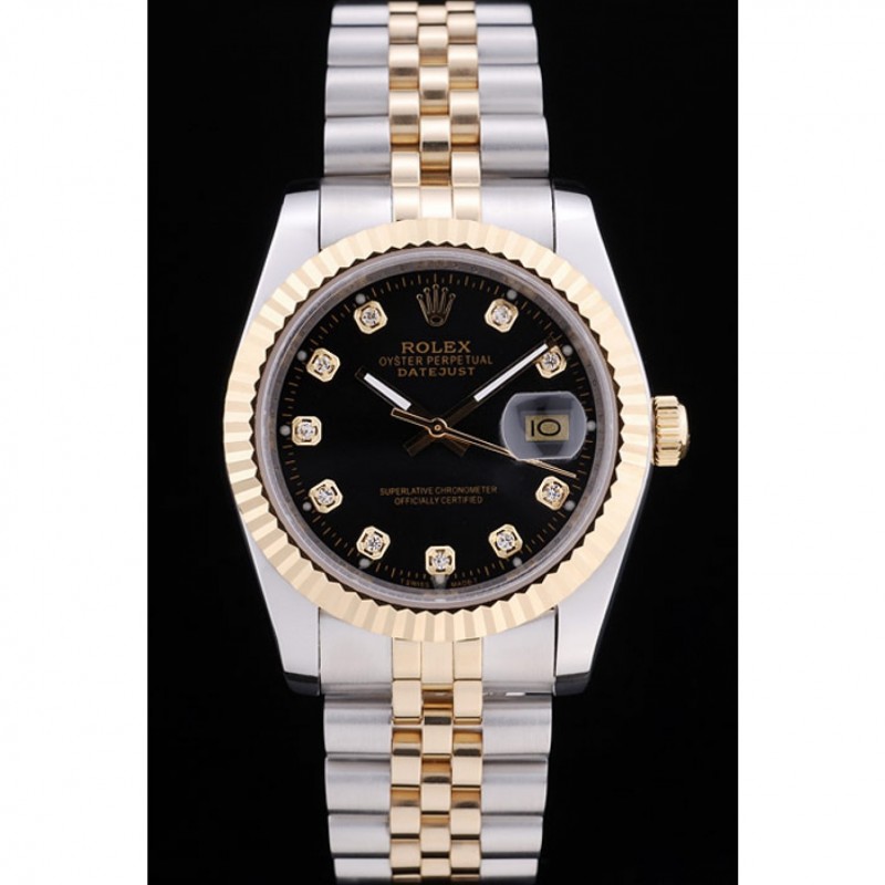 AAA Rolex Datejust Diamonds cadran noir côtelées Bezel 7453