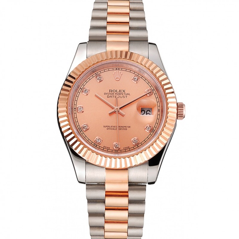 Swiss Rolex Datejust Dial or rose et boîtier en acier inoxydable Bezel Bracelet Deux Tone