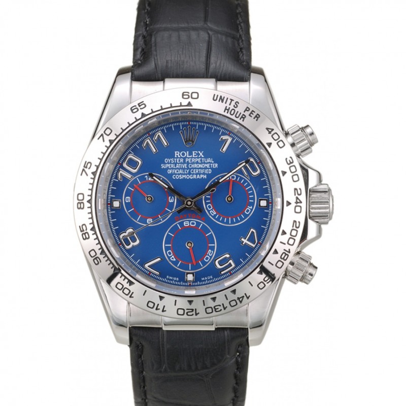 Rolex Daytona en acier inoxydable cas cadran bleu Bracelet en cuir noir