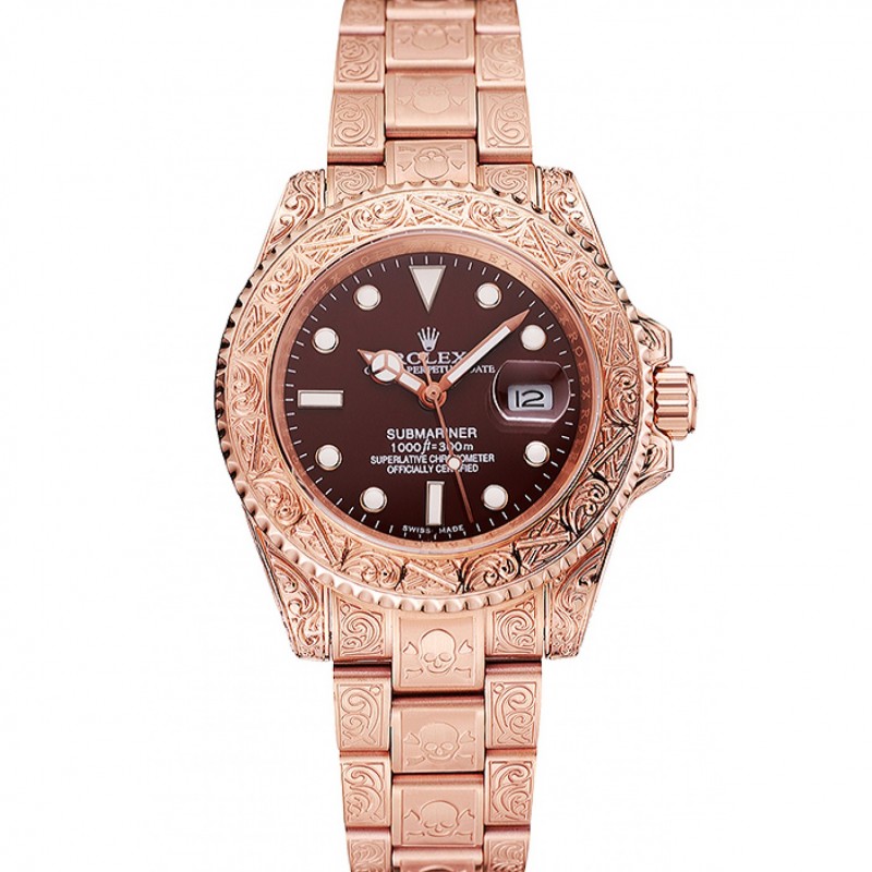 Swiss Rolex Submariner Skull Limited Edition Brown Dial or rose et bracelet 1454087
