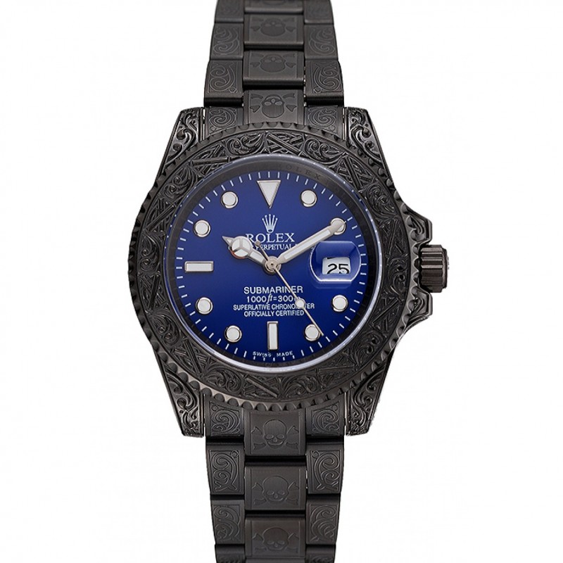 Swiss Rolex Submariner Skull Limited Edition cadran bleu Tous les cas noir et bracelet 1454084