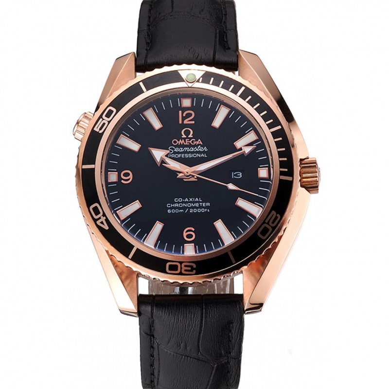 SS Replique Montre Omega Seamaster Planet Ocean Ceragold cadran noir 622389