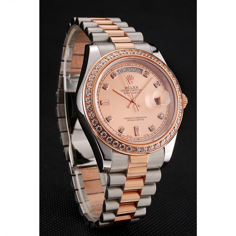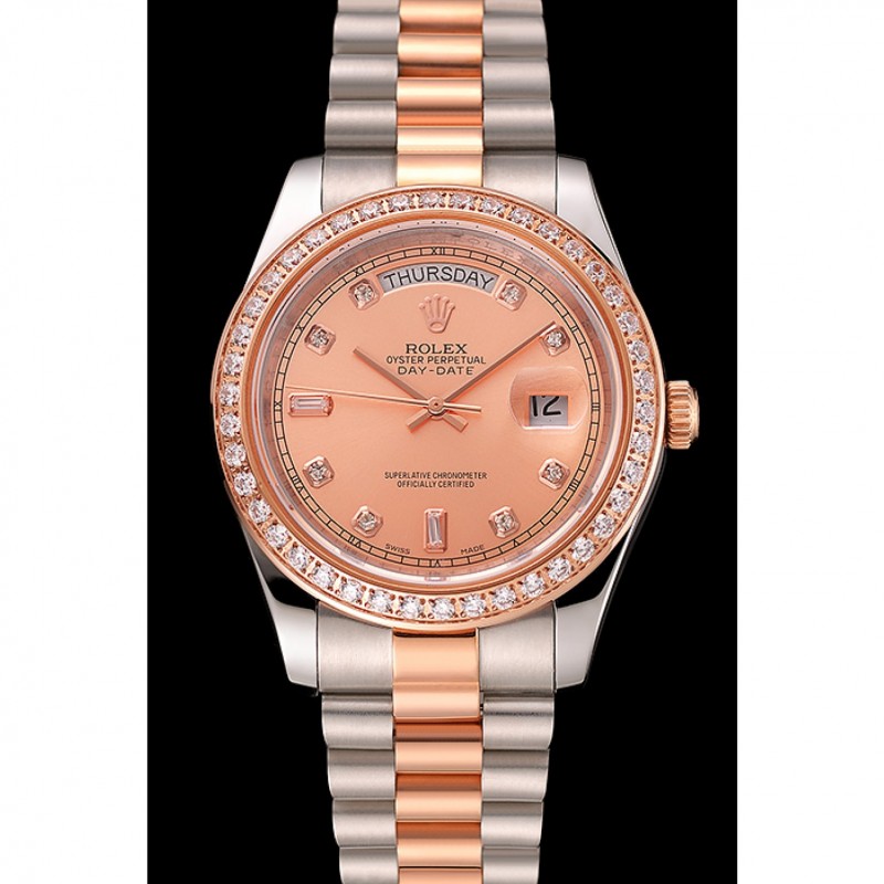 Découvrez l’Élégance de la Montre Haut Gamme Swiss Rolex Day-Date avec Diamants et Lunette en Or Rose