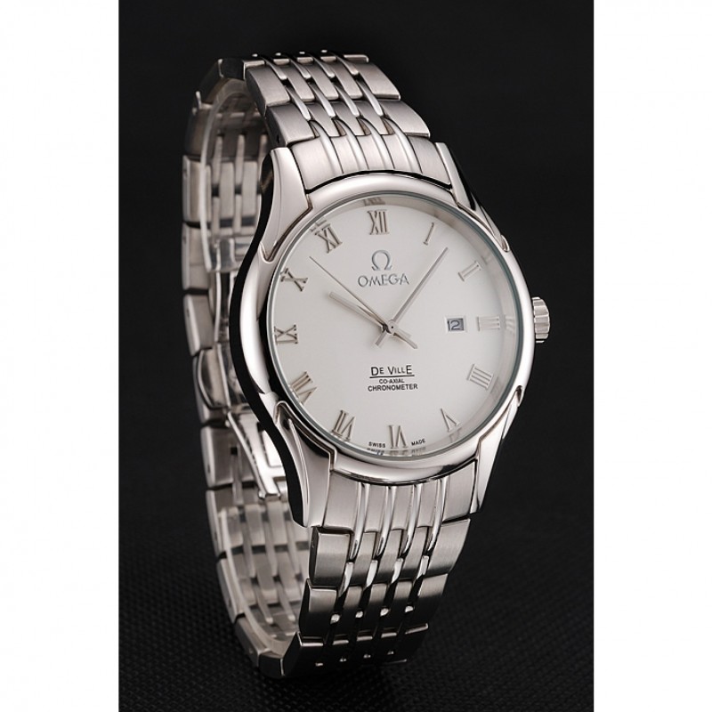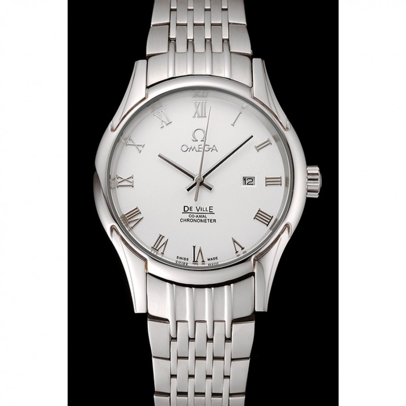 Omega De Ville Cadran Blanc Cas en acier inoxydable Roman Numerals Et Bracelet 1453791