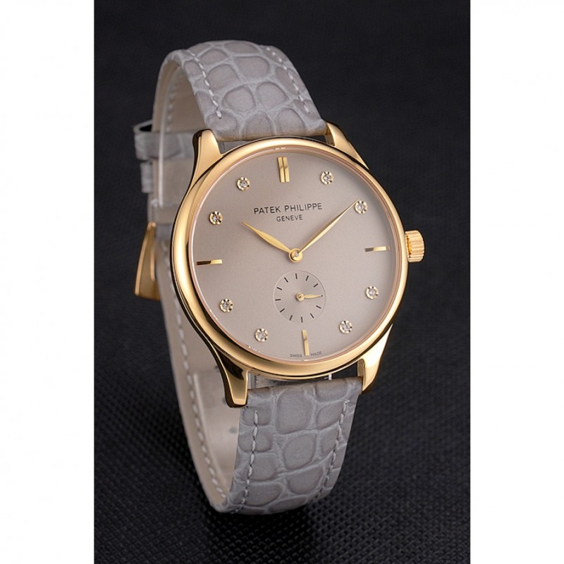 Le design soigné de la Patek Philippe Calatrava replica se remarque dans chaque détail : la lunette et la couronne sont plaquées or jaune 18 carats, avec le logo emblématique gravé et un décor cutwork sur la couronne. Le boîtier, d’une épaisseur fine de 9 mm et d’un diamètre généreux de 45 x 39 mm, confère à cette montre un confort optimal au poignet tout en affirmant un style masculin et élégant. Le choix du verre saphir garantit une excellente résistance aux rayures. Le bracelet en cuir de crocodile gris, muni d’une boucle plaquée or jaune 18 carats, complète cet ensemble luxueux. La montre est bien entendu résistante à l’eau mais non étanche, une précaution à prendre en compte pour préserver votre investissement.