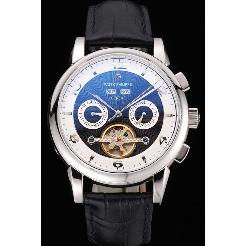 Le cadran noir sobre et élégant affiche les heures, les minutes, les secondes, le calendrier perpétuel et la phase de lune. Le verre saphir cristal offre une clarté exceptionnelle et une protection optimale contre les rayures. Cette montre est parfaite pour les hommes qui recherchent un accessoire sophistiqué et précis. Elle est disponible chez ancienrepliques.com, votre source de confiance pour les répliques de montres de luxe.