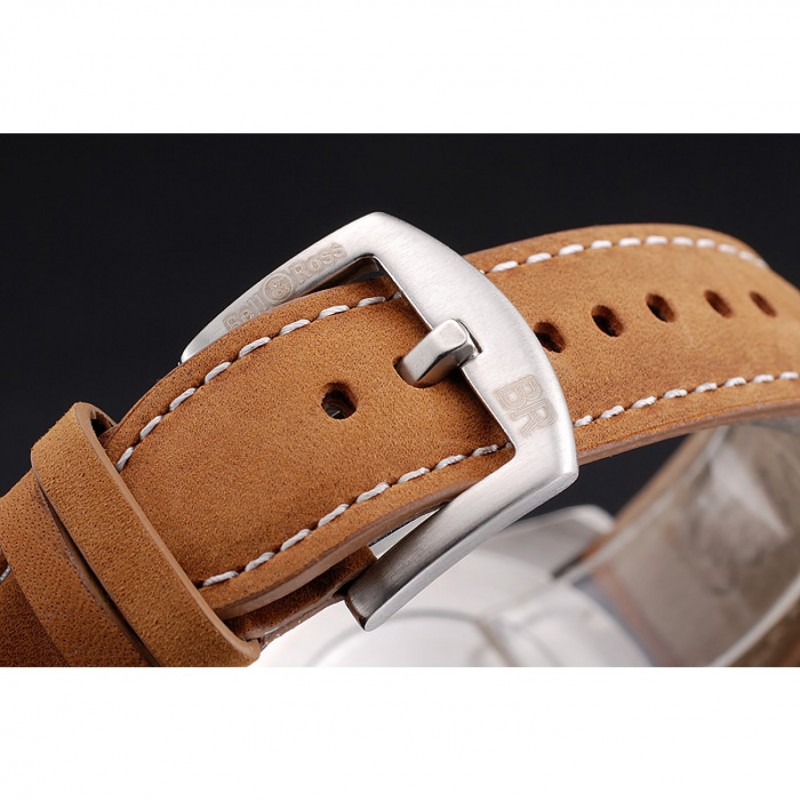 Bracelet:chaleur Bell&Ross bracelet en cuir en daim beige en relief avec le logo Inscribed en acier inoxydable brossé crochet- fermoir boucle