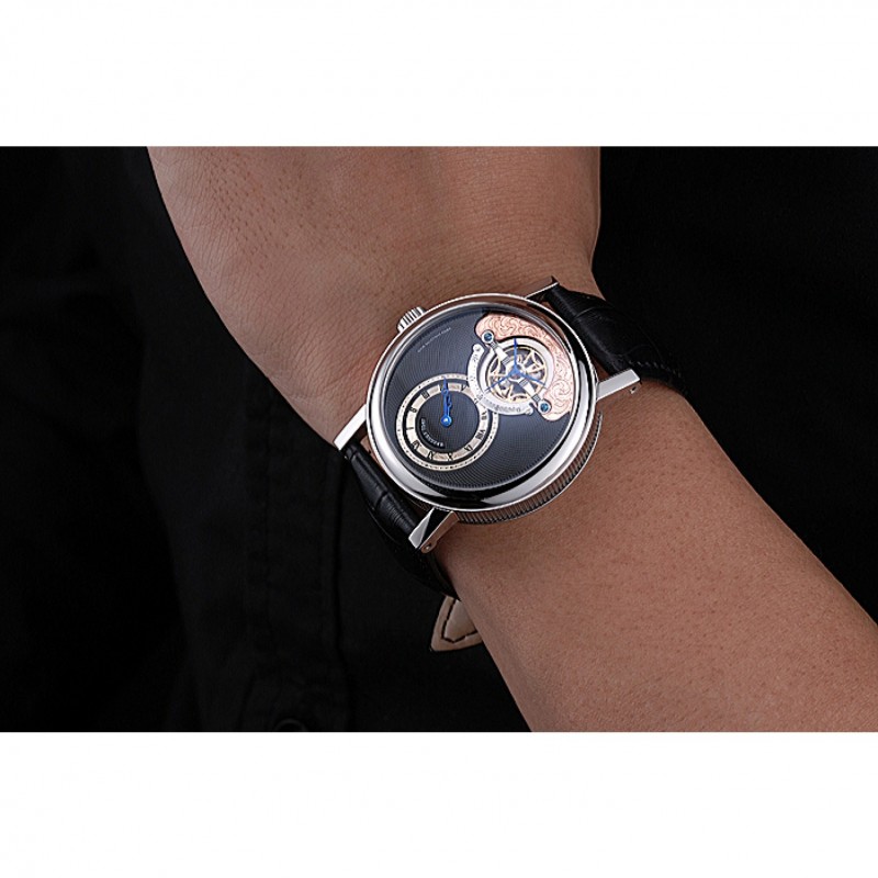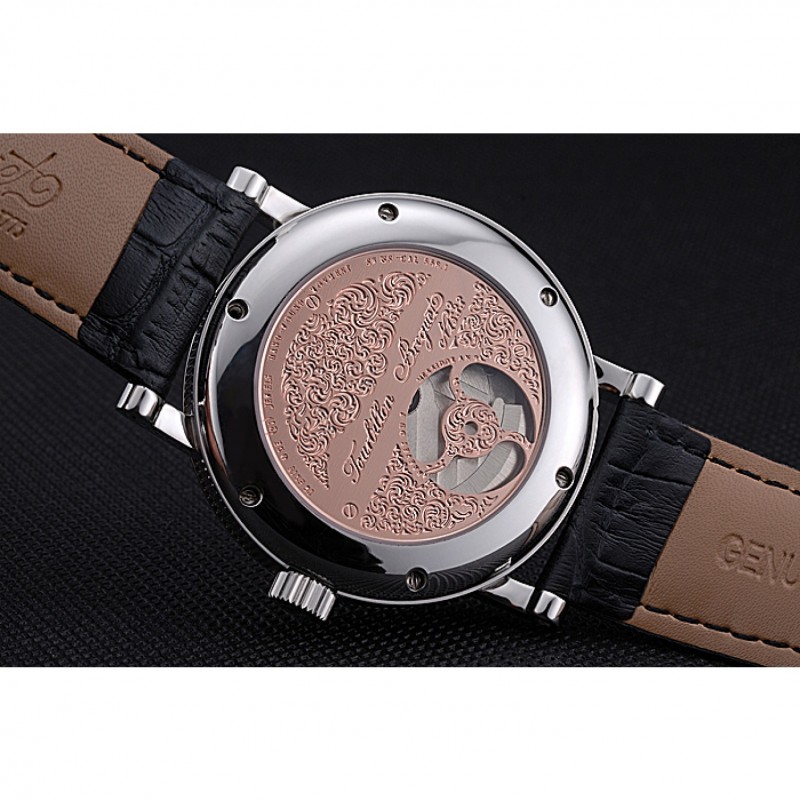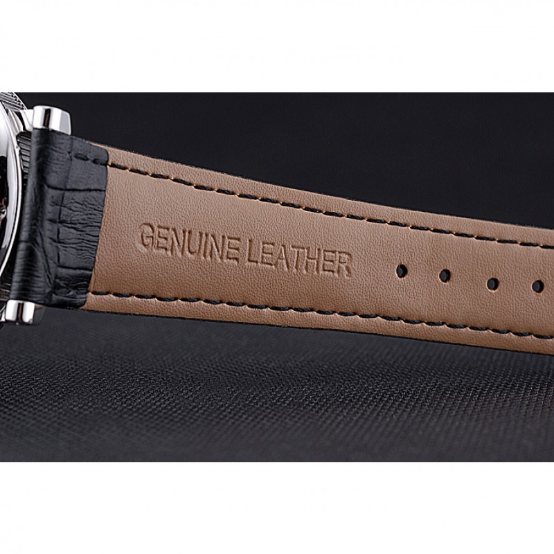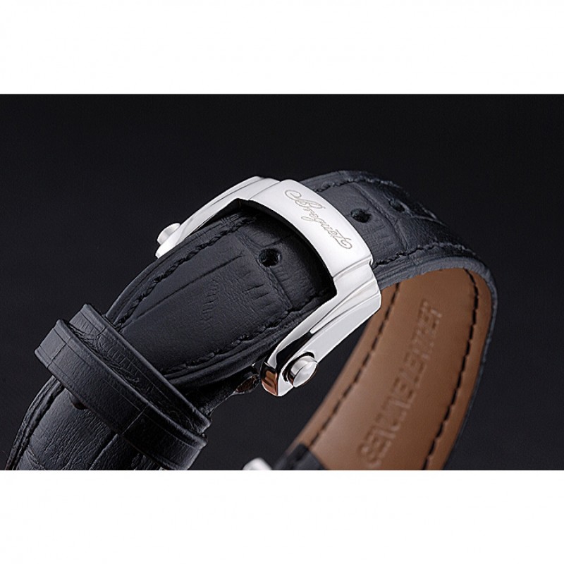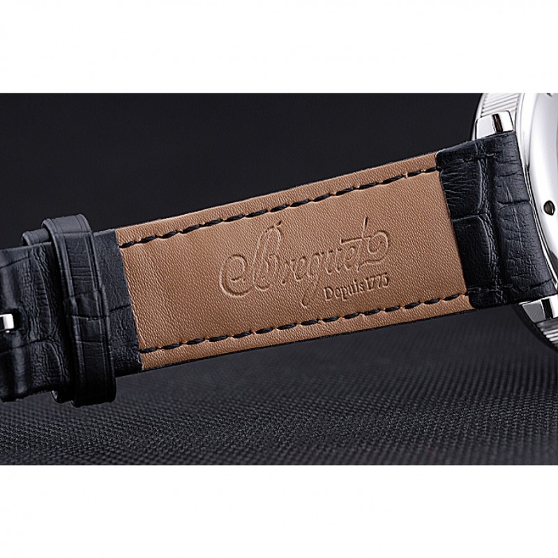 Bracelet:Breguet chaleur bracelet en cuir crocodile noir en relief avec Breguet gravé fermoir à crochet en acier inoxydable poli