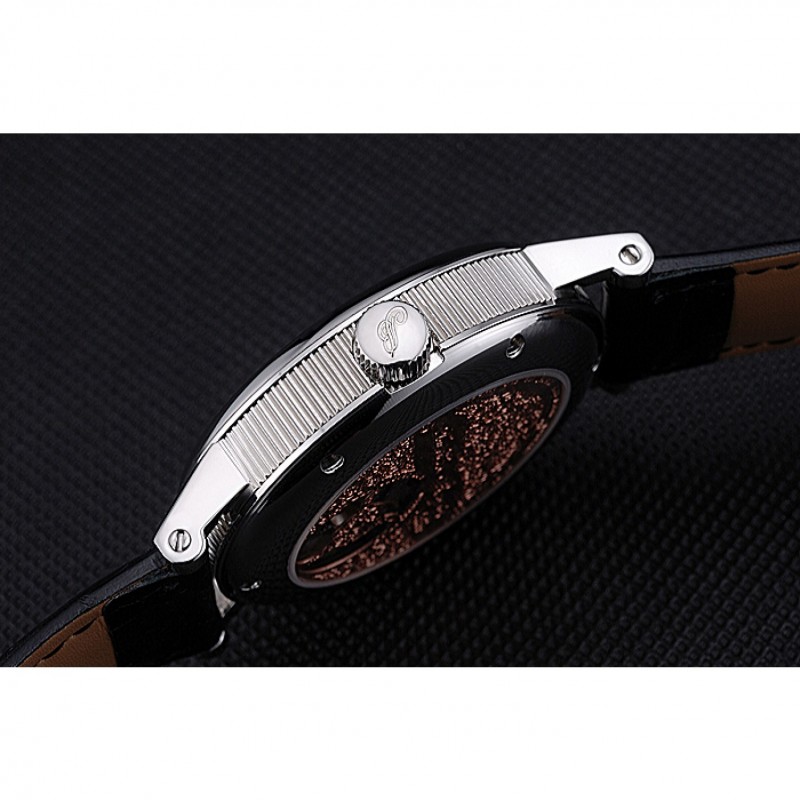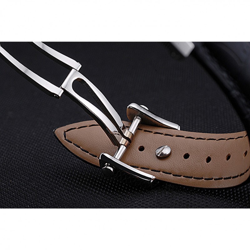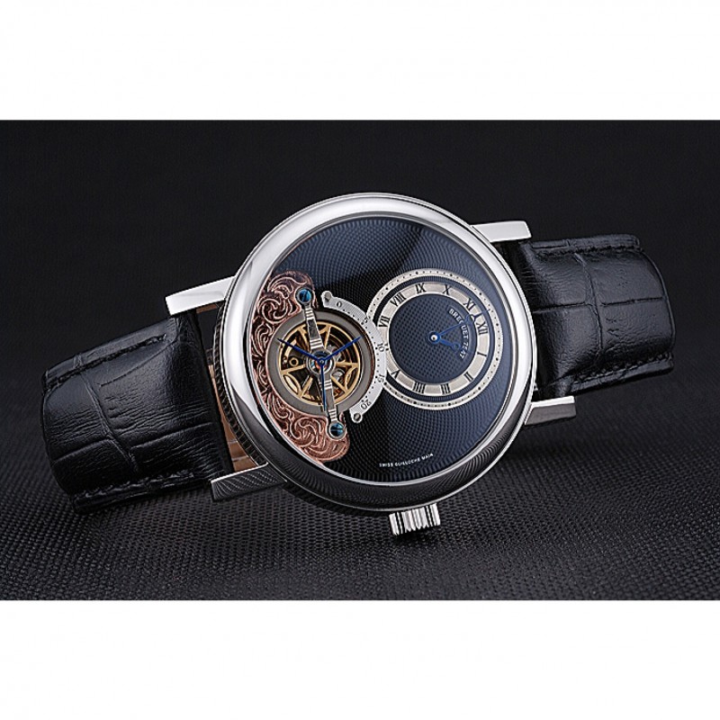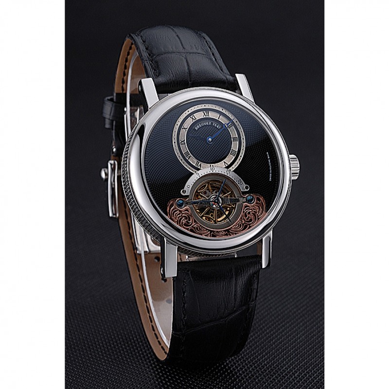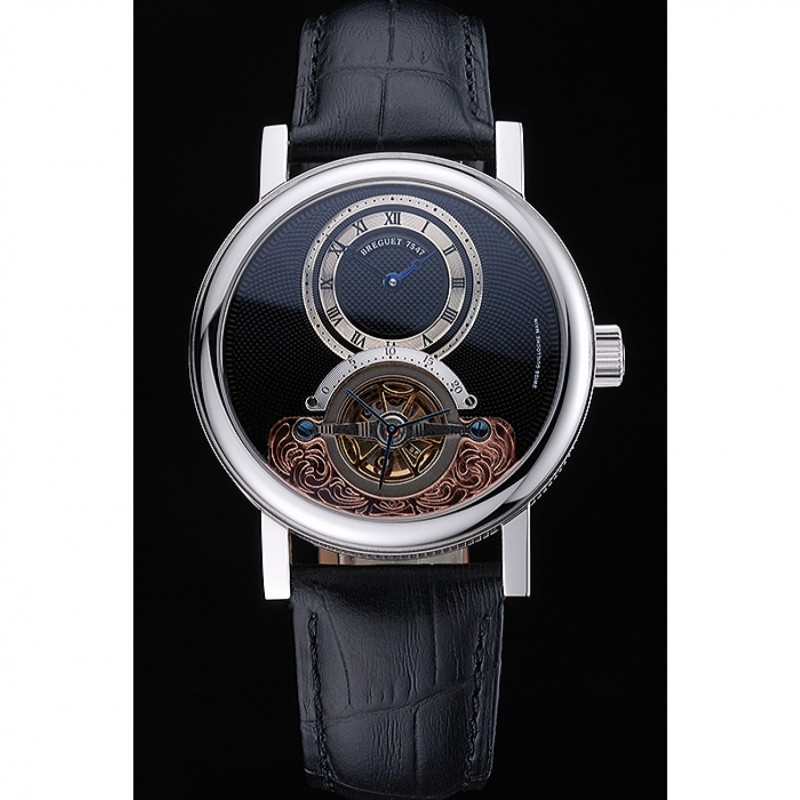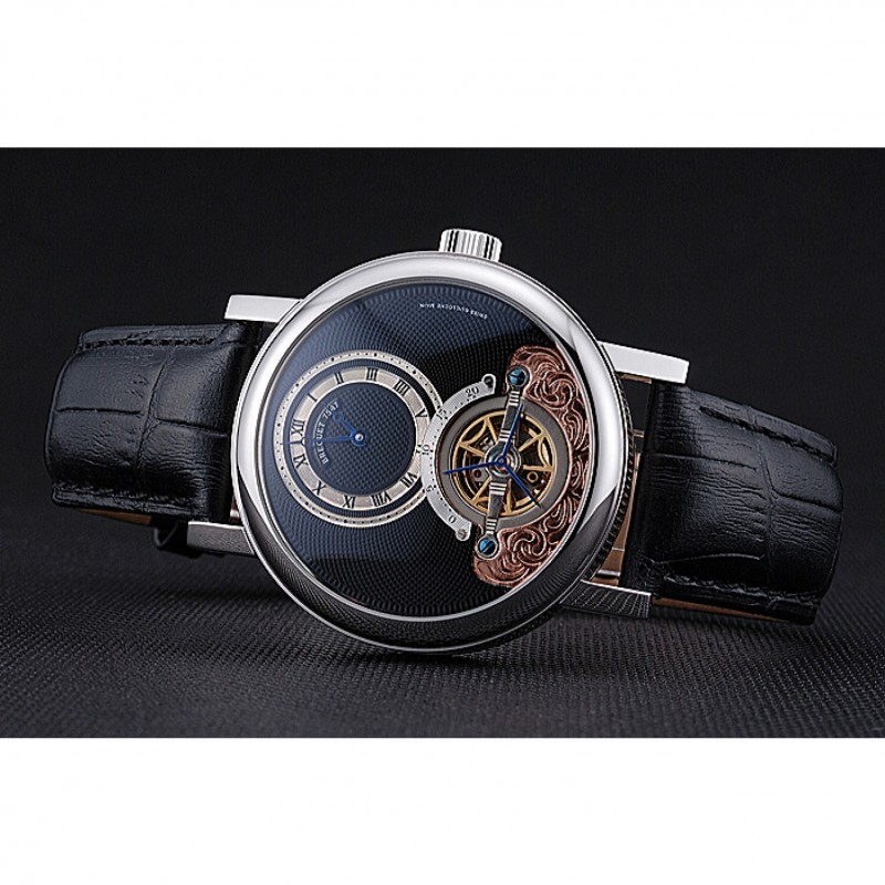 Bracelet:Breguet chaleur bracelet en cuir crocodile noir en relief avec Breguet gravé fermoir à crochet en acier inoxydable poli