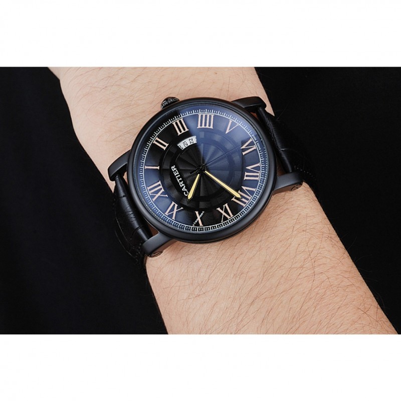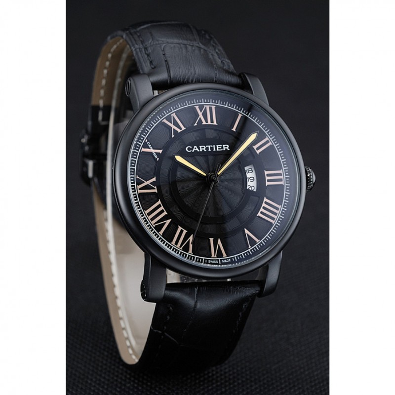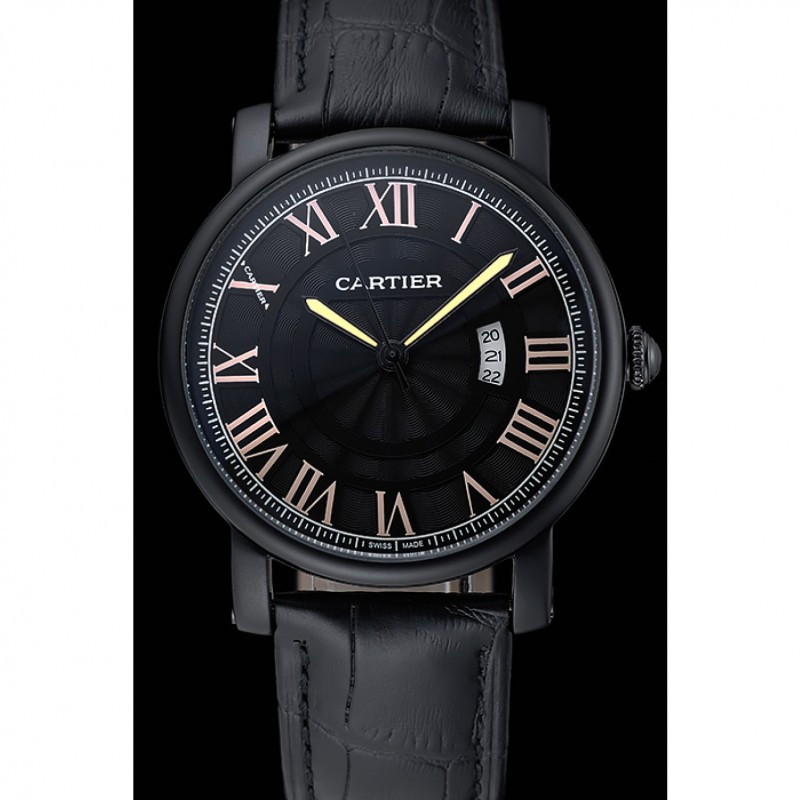 Bracelet:chaleur Cartier en relief bracelet en cuir crocodile noir plaqué ion fois -Plus fermoir