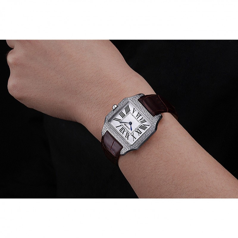 Retour:Santos100 Cartier en acier inoxydable gravé brossé vissé arrière