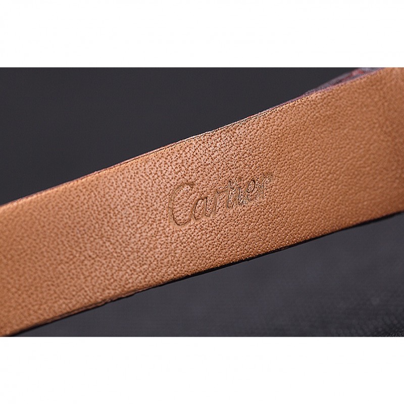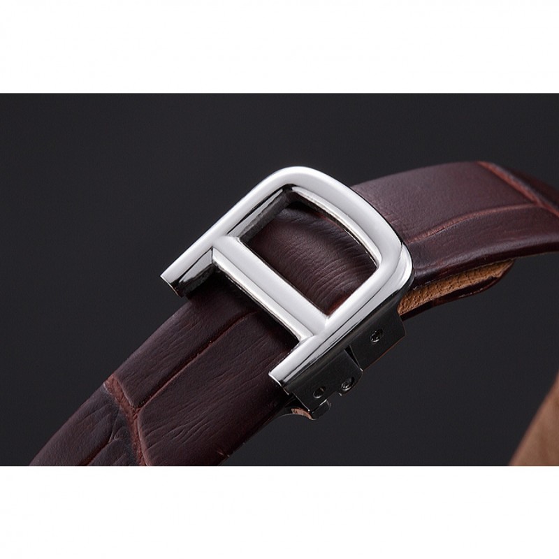 Bracelet:chaleur Cartier en relief sangle crocodile en cuir marron avec pli en boucle en acier inoxydable poli