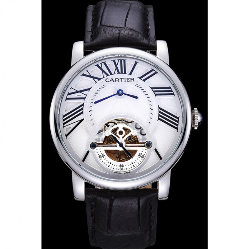 Retouracier inoxydable poli vissé en arrière avec la mécanique transparents centre révélateur et inscription Cartier