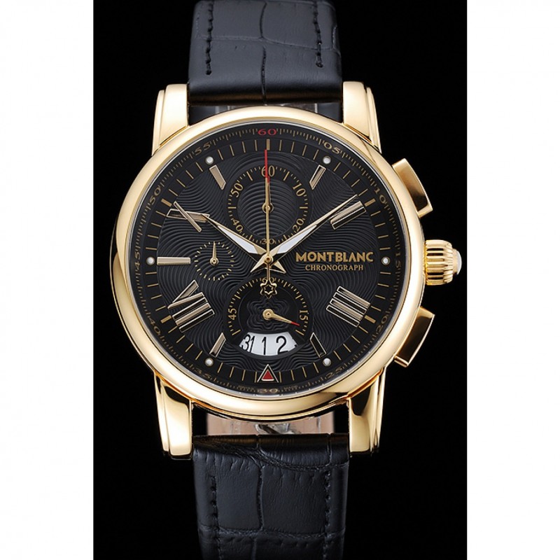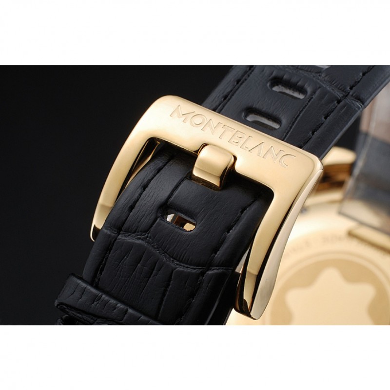 Bracelet:chaleur Montblanc bracelet en cuir crocodile noir gravé Montblanc gravé 18k plaqué or jaune fermoir crochet-boucle