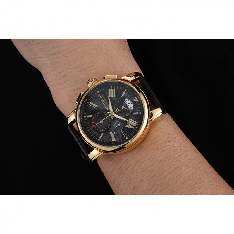This watch is a beautiful and elegant timepiece that is perfect for any occasion. The black dial is set against a polished 18k gold-plated case, and the black leather strap adds a touch of sophistication. The watch is water-resistant up to 30 meters, and it comes with a two-year warranty.