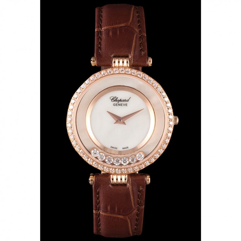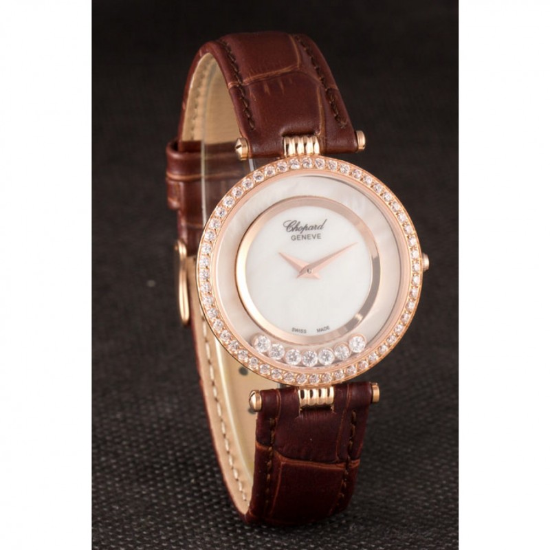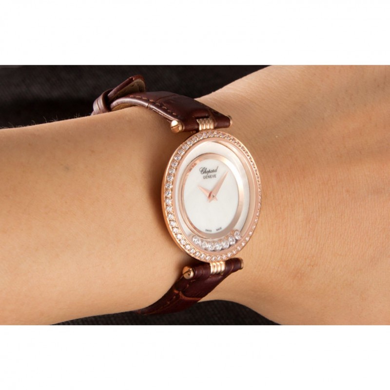 Bracelet:chaleur Chopard bracelet en cuir de crocodile brun gravé Chopard gravé 18k rose plaqué or fermoir crochet-boucle