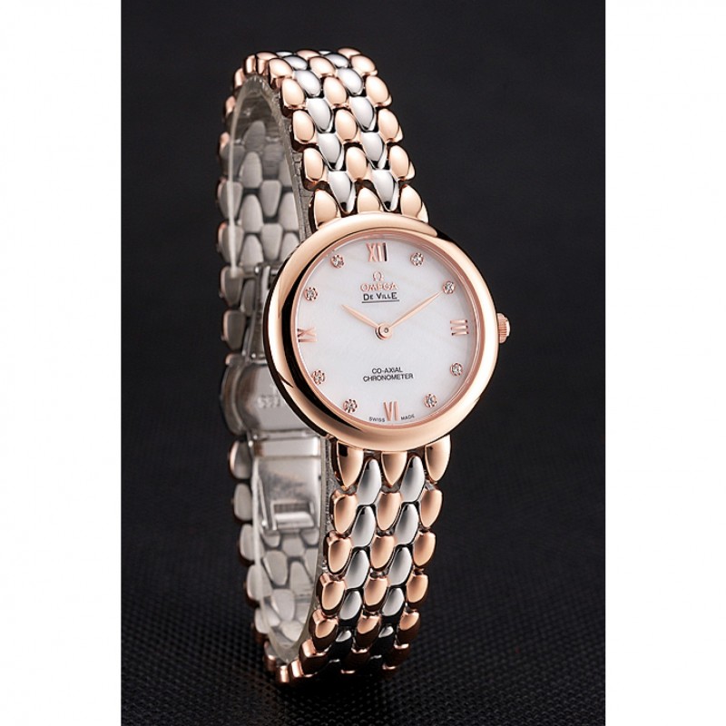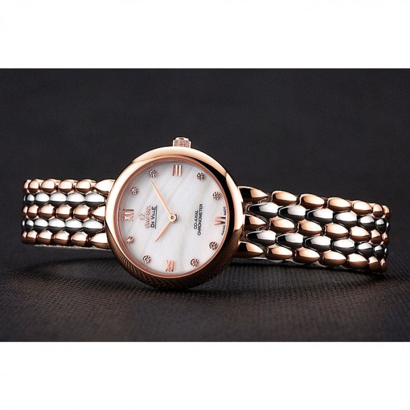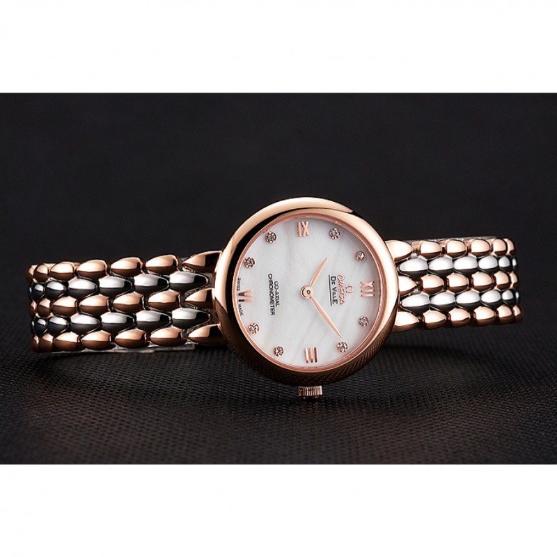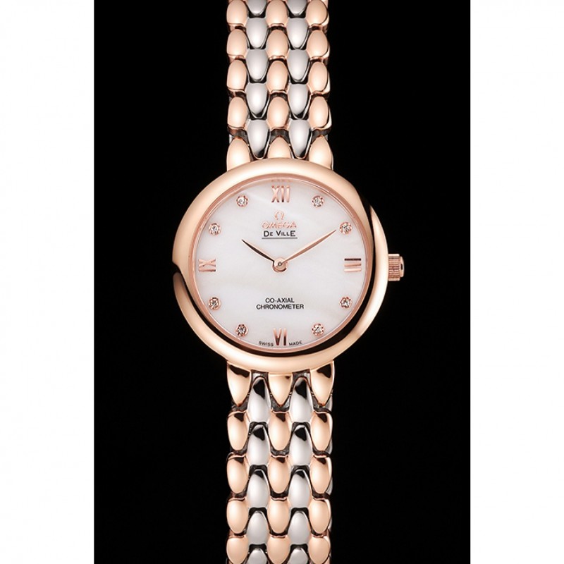 AAA Omega De Ville Prestige Non Date cadran blanc avec des diamants boîtier en or rose Bracelet deux tons