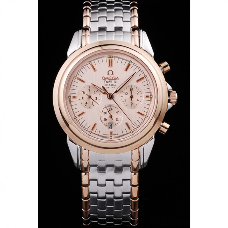 Bracelet:plaqué or jaune brossé bracelet à maillons en acier inoxydable avec le logo Omega gravé fermoir caché